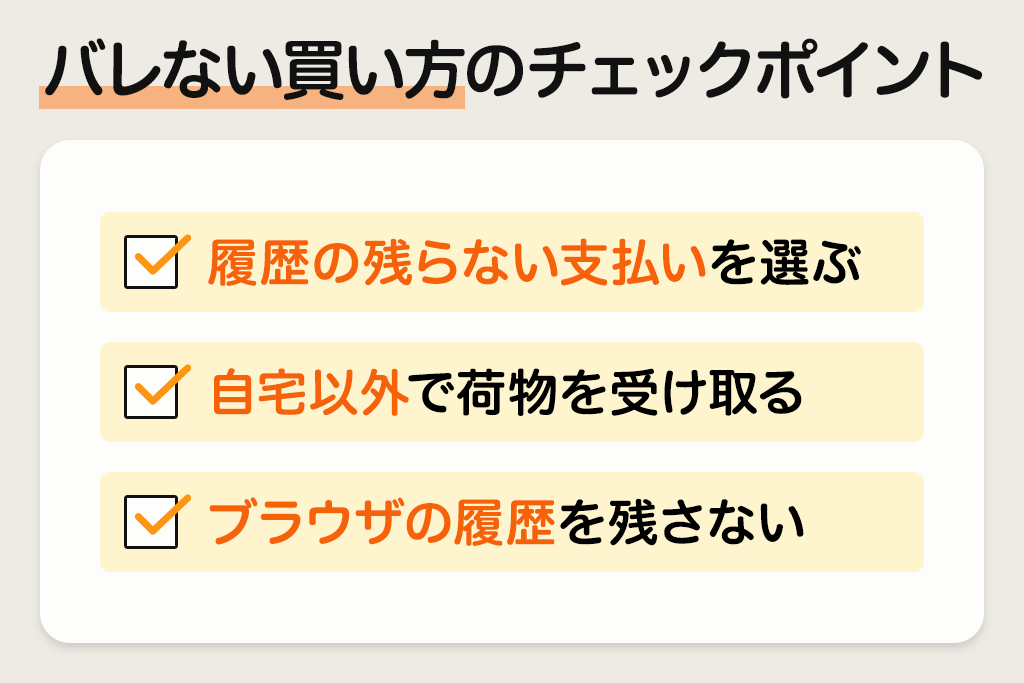 また、「バレない買い方」を徹底するために意識したいポイントは次の3つです。